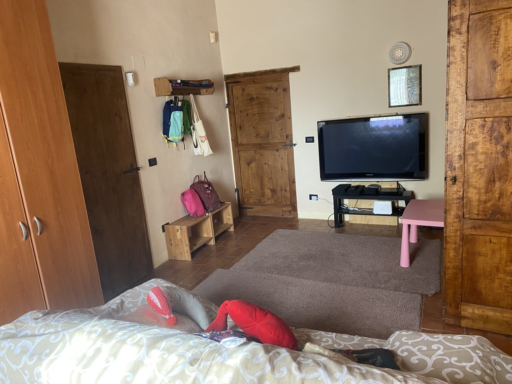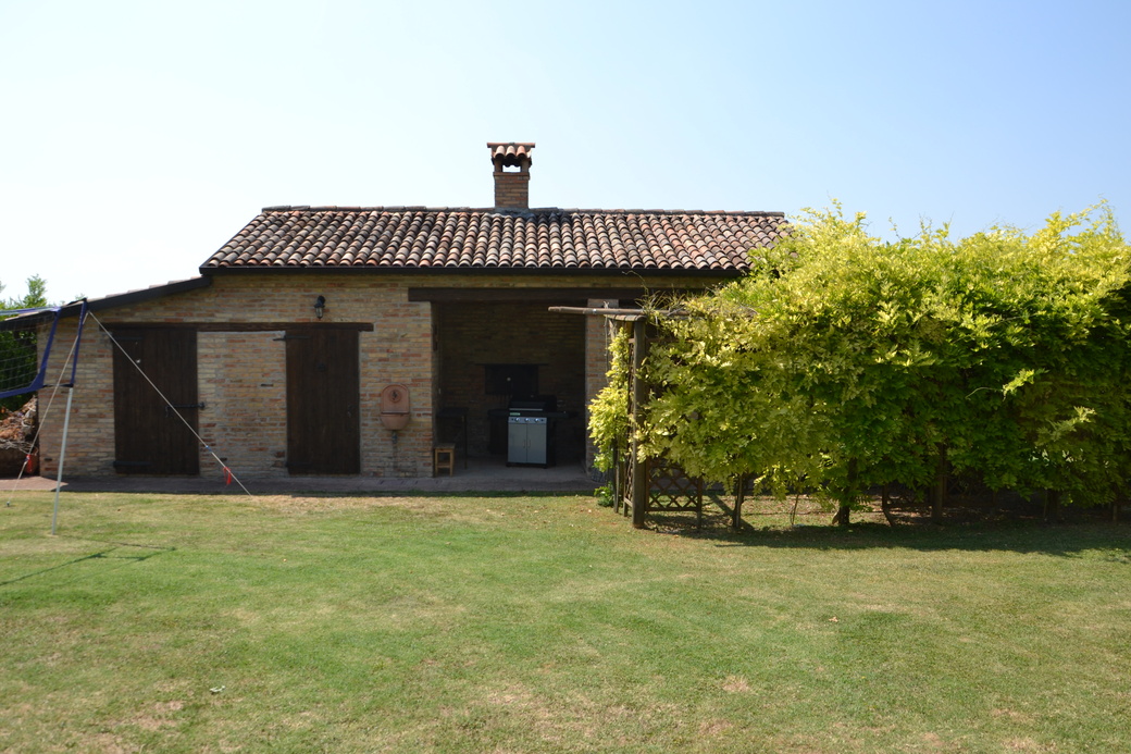 All’esterno, in corpo distaccato, c’è un proservizio di circa 45 Mq composto da due ambienti legnaia, un ripostiglio, forno per pizza e pane con portico di 13,7 Mq.