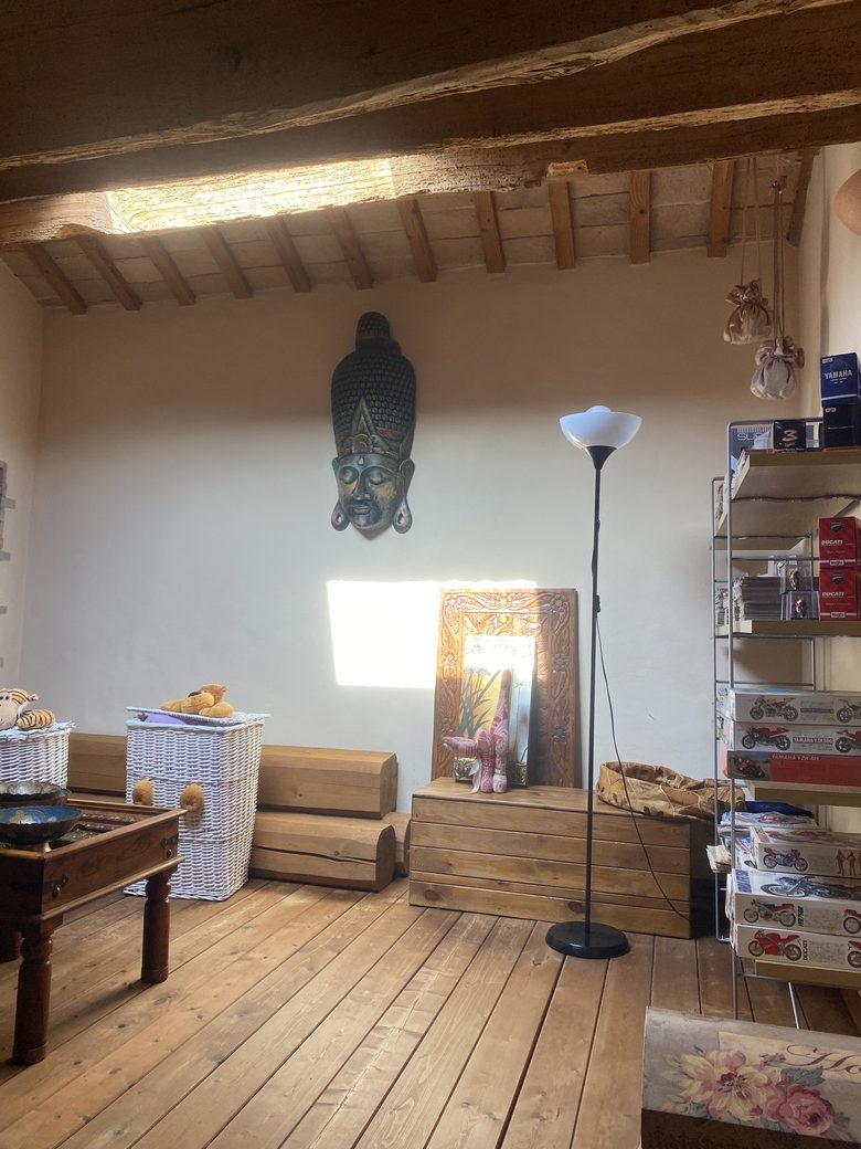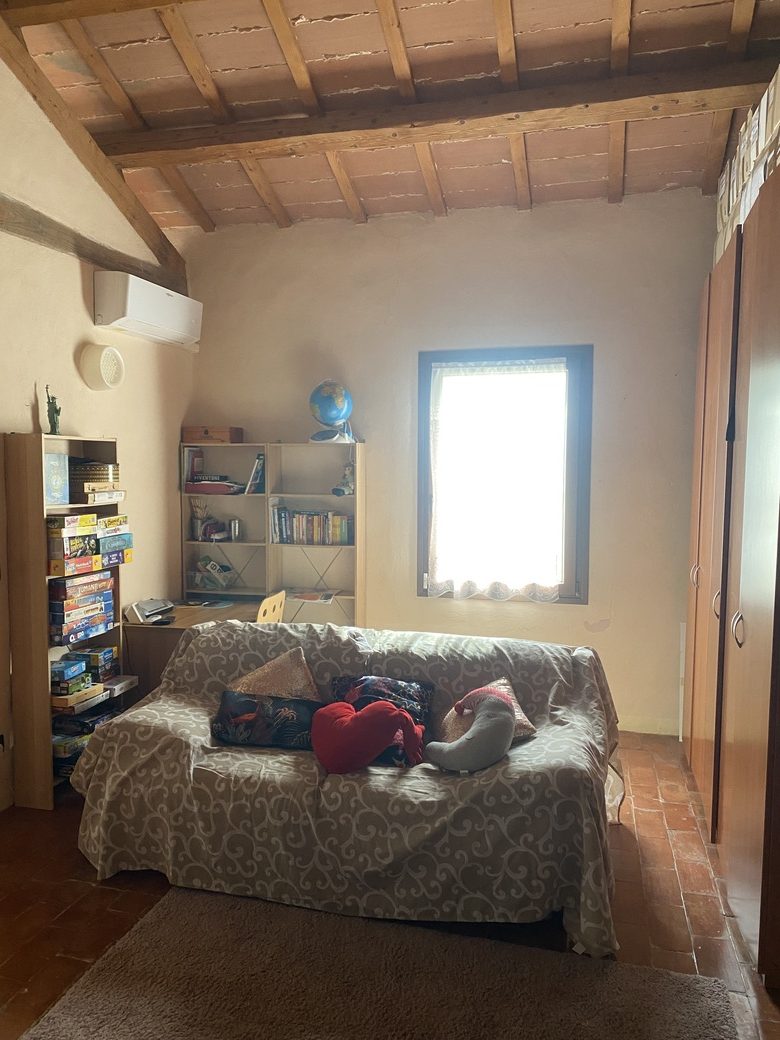 Completa l’abitazione un sottotetto soppalcato – che sta sopra la zona studio – illuminato da un lucernaio, di circa 13 Mq.